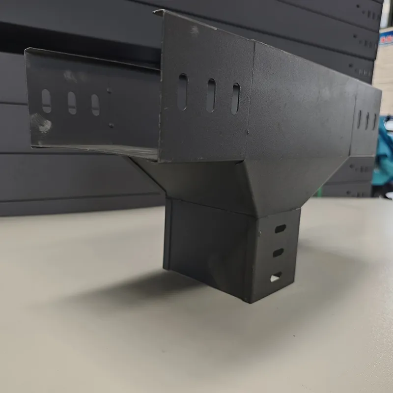 Вертикальное ответвление: Позволяет кабелям ответвляться от главного лотка вверх или вниз, формируя Т-образную структуру, что удовлетворяет требованиям вертикальной прокладки.